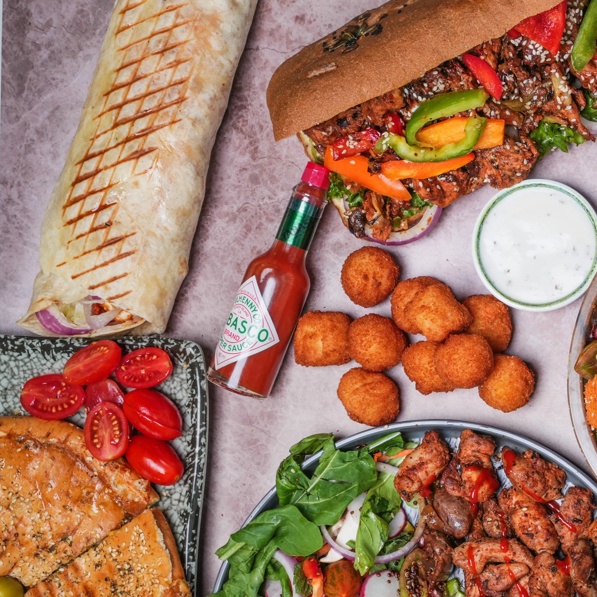 חומוס - כרוב סגול - חריף - מתבל - קולסלו - טורקי - פסטו - איולי פילדלפיה - איולי שום - מלפפון - עגבניה - מלפפון חמוץ - חסה - בצל - כרוב לבן.