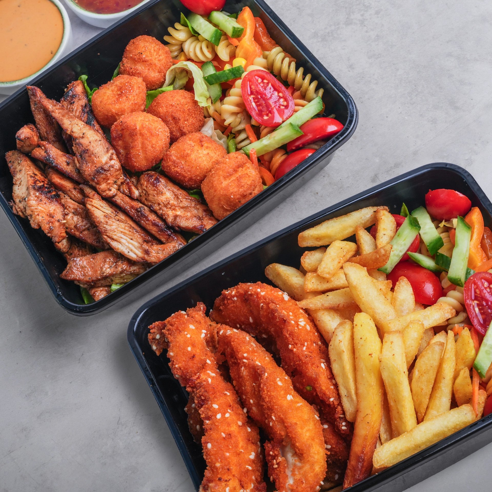 חמגשית שניצלונים/חזה עוף + צ'יפס + ירקות